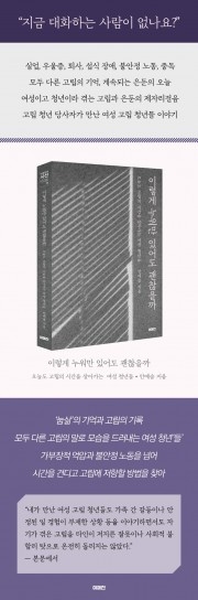 236쪽 여성 청년이 사회에서 떠맡은, 또는 사회에서 여성 청년에게 허락한 ‘들어주는’ 자리는 이 사회가 인정하지 않고 경제적 이득도 없는 ‘보이지 않는’ 공간에 있다. 타인을 이해하고 수용(해야)하는 사고 체계와 부정적 기억마저 제 탓으로 돌리고 마는 습관은 정치와 공공이 펼치지 않는 책 뒷면에 놓여 있다. 섭식 장애, 우울, 자살, 빈곤, 폭력, 고립에 관한 이야기가 조심스레 한 줄 한 줄 쓰이고, 허약한 가족 배경과 부족한 안정된 일자리가 여백을 채운다. 고립을 견디는 과정은 개인적이지만 고립에 접어드는 과정은 너무나 사회적이다.